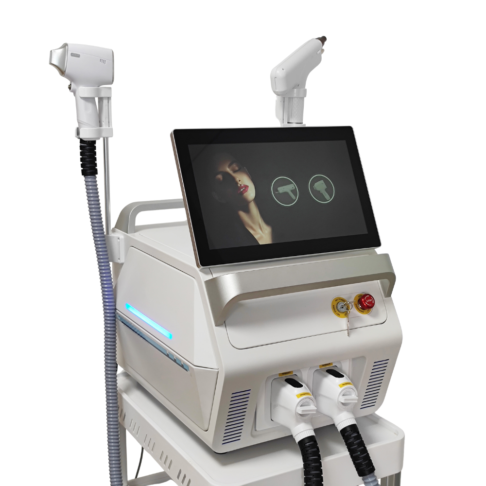 PhotonNova 2w1 to zaawansowana dwumodułowa platforma zabiegowa, która w jednym urządzeniu łączy trójfalowy laser diodowy do permanentnej depilacji ze skutecznym laserem pikosekundowym do usuwania tatuaży, przebarwień i odmładzania skóry. Laser diodowy pracuje z mocą 900W lub 1800W i oferuje długości fal 755nm, 808nm oraz 1064nm, umożliwiając skuteczną depilację wszystkich fototypów skóry (I–VI). Laser pikosekundowy dysponuje trzema końcówkami: 532nm, 1064nm i 1320nm, co pozwala usuwać tatuaże we wszystkich kolorach oraz przeprowadzać zaawansowane zabiegi rewitalizacji i peelingu węglowego.
