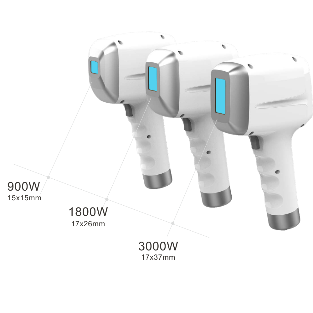 755nm + 808nm + 1064nm | Moc 900W / 1800W / 3000W | 100 milionów impulsów | Plamka do 17×37mm | Ekran 4K 15,6″