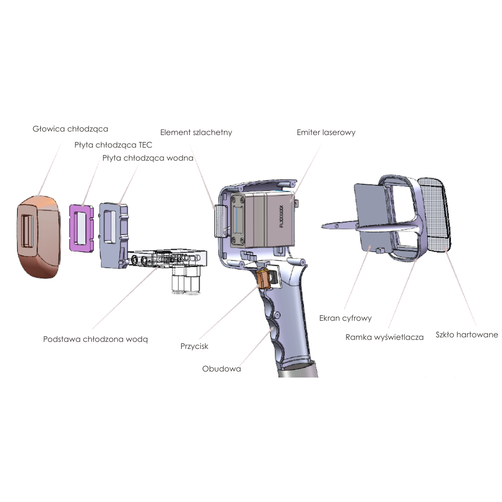 Technologia FAC (Fast Axis Collimator) kolimuje tor świetlny lasera, eliminuje kąt dywergencji wiązki i przekształca rozbieżne światło w równoległy tor – wygładzając krawędzie plamki i zapewniając jednolitą gęstość energii na całej jej powierzchni. Przekłada się to na przewidywalne efekty zabiegowe i minimalne ryzyko nierównomiernego traktowania skóry. Wewnętrzna struktura urządzenia z zaawansowanym systemem monitorowania ułatwia szybką diagnostykę i serwis, minimalizując przestoje w pracy gabinetu.