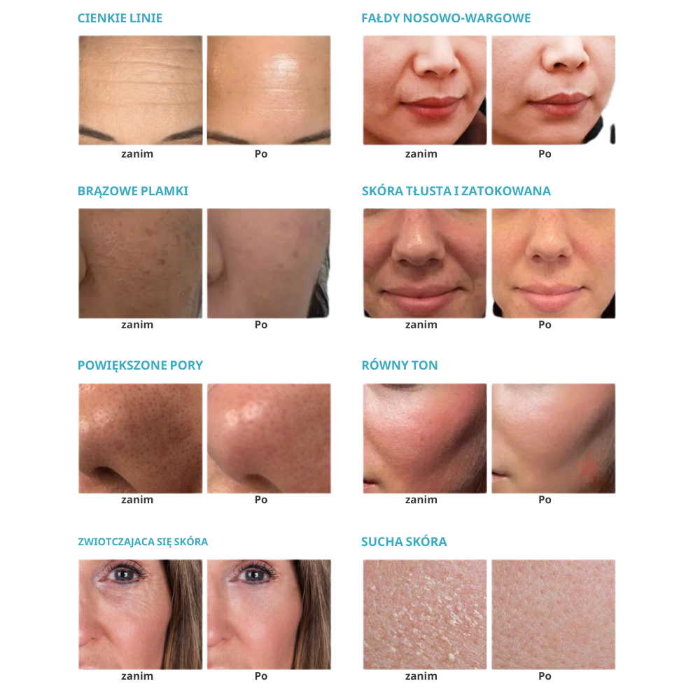 System szczególnie polecany jest pacjentom ze skórą odwodnioną, zmęczoną, matową lub zwiotczałą, zmagającym się z drobnymi zmarszczkami, zaskórnikami lub niedoborem nawodnienia. Bezbolesność i nieinwazyjność wszystkich trybów zabiegowych sprawia, że urządzenie sprawdzi się również w obsłudze skóry wrażliwej i reaktywnej. Osiem technologii w jednym urządzeniu to wyjątkowa szansa na poszerzenie menu zabiegowego bez konieczności inwestowania w oddzielny sprzęt, co bezpośrednio przekłada się na rentowność gabinetu.
