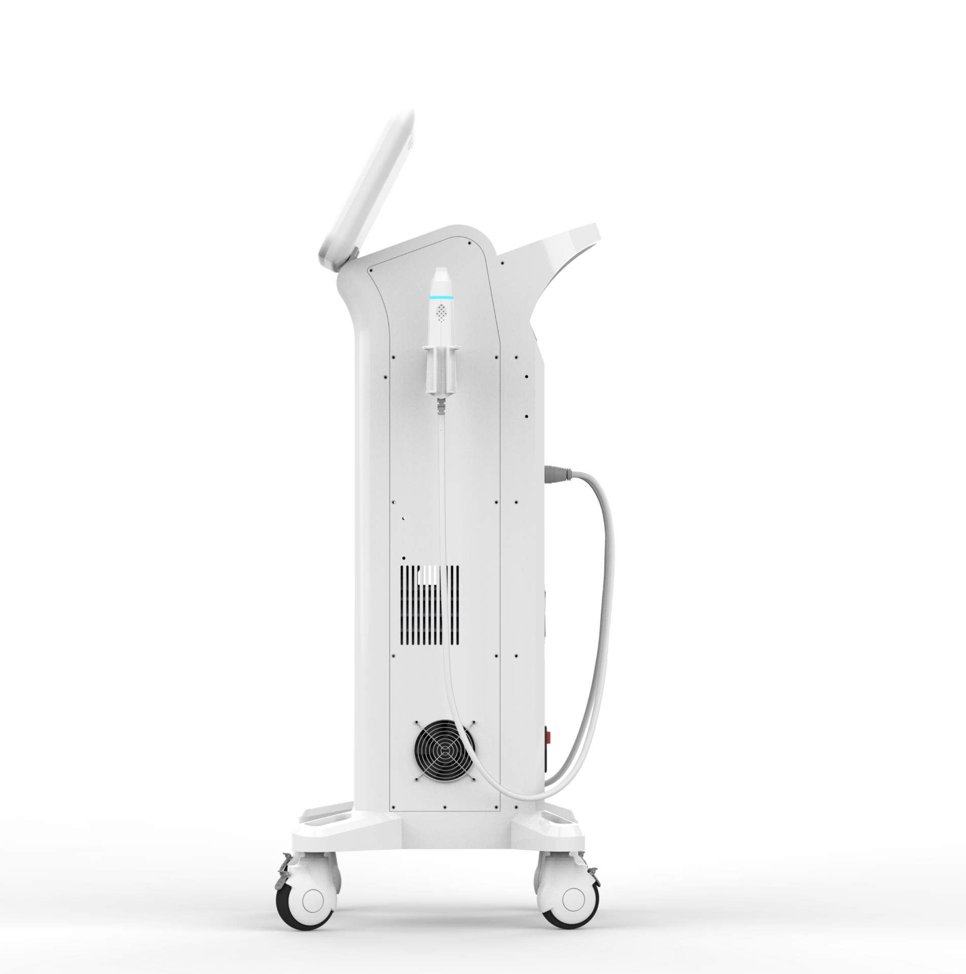 Uchwyt RF+EMS (zintegrowany z sondą) łączy diatermię RF z elektryczną stymulacją mięśniową (EMS), działając synergicznie na tkankę mięśniową i skórną. Uchwyt plazmowy obsługuje szereg wymiennych końcówek – od rolki mikroporowatej, przez końcówki proste i zakrzywione, aż po złote sondy jonizujące i sondy antytrądzikowe – oferując szerokie spektrum zabiegów estetycznych.