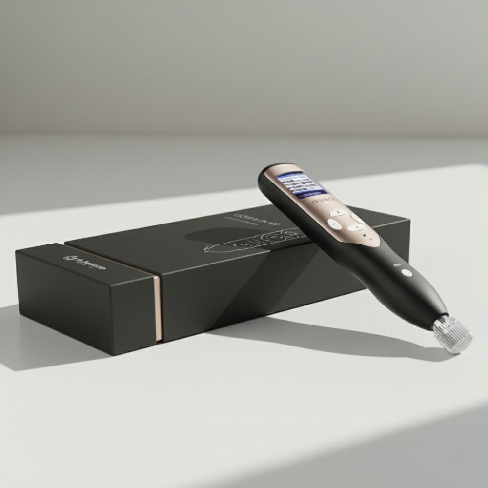 PulseGate to kompaktowe, bezprzewodowe urządzenie wielofunkcyjne łączące technologię zimnej plazmy z mikroigłowaniem transdermalnym. Urządzenie pracuje bez butli z gazem dzięki bezpośredniej jonizacji powietrza, co czyni je wyjątkowo bezpiecznym i wygodnym w codziennej praktyce gabinetowej. Wbudowany wyświetlacz LCD pozwala na bieżący podgląd parametrów – czasu zabiegu, poziomu energii oraz trybu pracy.